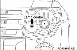 Measure the distance from the centre line of the vehicle to the centre of each headlamp. Transfer the measurement to the screen. Vertical tape or mark on the screen is for reference to the centre line of each headlamp bulb.