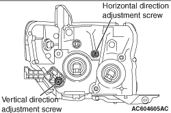 1.The headlamps should be aimed with the proper beam setting equipment, and in accordance with the equipment manufacture’s instructions. 2.Alternately turn the adjusting screw to adjust the headlamp aiming.