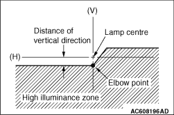 Standard value: Vertical direction; 36 mm (0.69°) below horizontal (H) Horizontal direction; Elbow point intersects the vertical line (V) Limit: Vertical direction; 21 mm (0.4°) to 51 mm (0.98 °) below the horizontal (H) Horizontal direction; ±26 mm (±0.5°) from the vertical line (V)