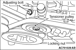 Rotate the adjusting bolt to the anti-clockwise direction (to the left), and remove the drive belt.
