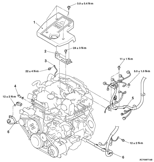 caution *: Indicates parts which should be initially tightened, and then fully tightened after placing the vehicle horizontally and loading the full weight of the engine on the vehicle body.