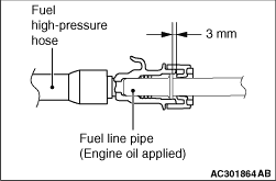Apply a small amount of engine oil to the fuel line pipe, and install the fuel high-pressure hose.