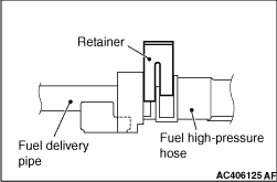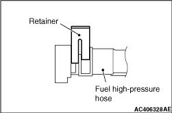 note If the retainer is released, install it securely after removing the fuel high-pressure hose.