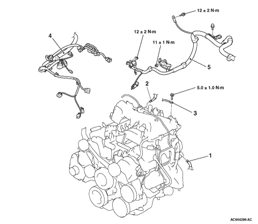 caution Tighten the engine mounting bracket mounting bolt to the specified torque with the engine weight applied on the vehicle body after the engine installation.