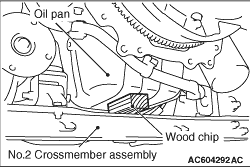2.Remove the wood chip inserted in between the oil pan and the crossmember No. 2 to hold the engine assembly when the transmission assembly is removed.