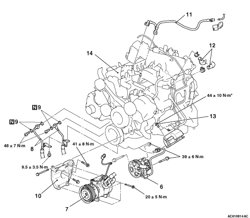 • *: Indicates parts which should be initially tightened, and then fully tightened after placing the vehicle horizontally and loading the full weight of the engine on the vehicle body.