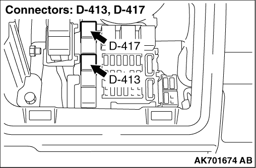 D-417 (terminal No. 4) fuel pump relay (1) connector and battery.