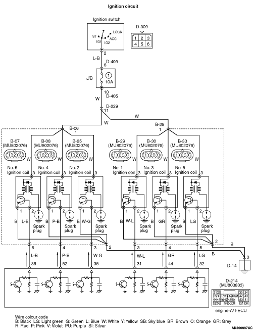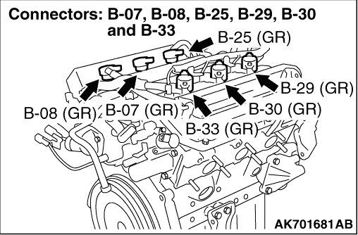 - Disconnect B-07, B-08, B-25, B-29, B-30 and B-33 ignition coil connectors.