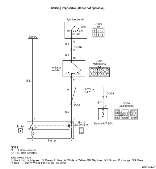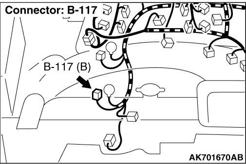 9) inhibitor switch connector and B-117 (terminal No. 1) starter connector.