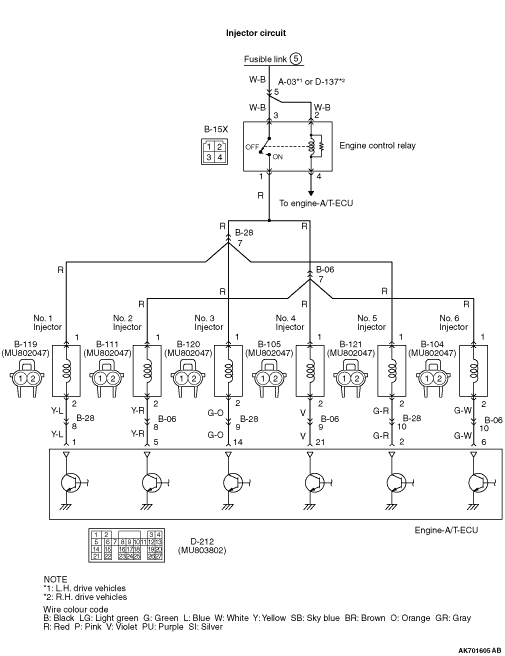 No. 1) engine control relay connector and B-111 (terminal No. 1) No. 2 injector connector.