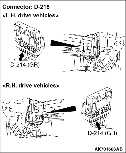 3) throttle valve control servo relay connector and D-212 (terminal No. 15) engine-A/T-ECU connector.