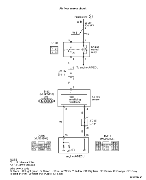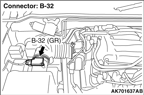 No. 1) engine control relay connector and B-32 (terminal No. 2) air flow sensor connector.