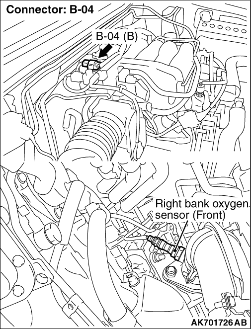 STEP 2. Connector check: B-04 right bank oxygen sensor (front) connector |