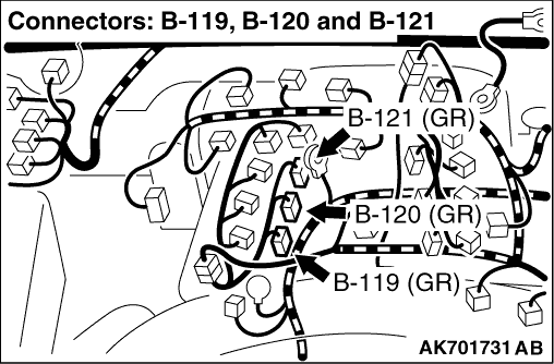 8) injector intermediate connector and B-119 (terminal No. 2) No. 1 injector connector