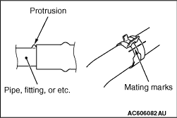 1.Make mating marks on the radiator hose and the hose clip as shown to install them in the original position.
