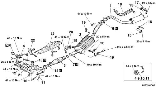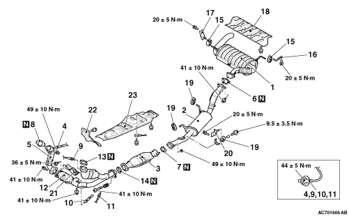 1.Tighten the oxygen sensor to the specified torque by using special tool oxygen sensor wrench (MB991953).