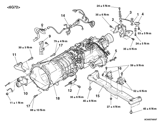 Clutch release cylinder connection <6G72> or clutch release cylinder and clutch chamber assembly connection <4M4>