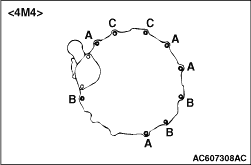 Battery wiring harness connection <4M4>