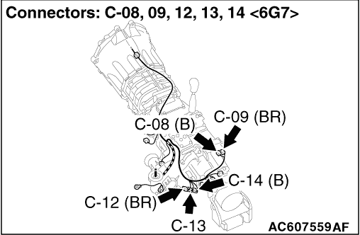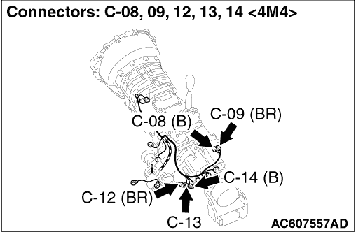 - When the transfer position is 2H, connector C-08 terminal No.1 resistance should measure less than 2 Ω.