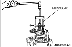 3.Using the special tool, Lock nut wrench (41) (MD998809), tighten the counter shaft cluster gear lock nut to the specified torque of 255 ± 10 N·m.