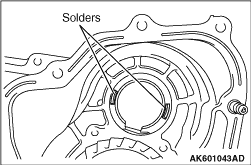 1.Put plastigage (about 10 mm long) in the illustrated positions of the transfer case housing. 2.Install the adjusting spacer having the minimum thickness. 3.Install the countershaft gear into the transfer case. 4.Install the transfer case plate and tighten the bolts to the specified torque of 35 ±
