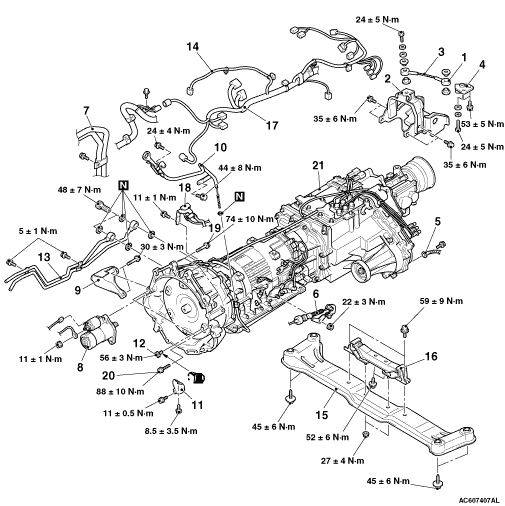 >>A<< TRANSMISSION UPPER CONNECTING BOLTS/TRANSMISSION LOWER CONNECTING BOLTS INSTALLATION