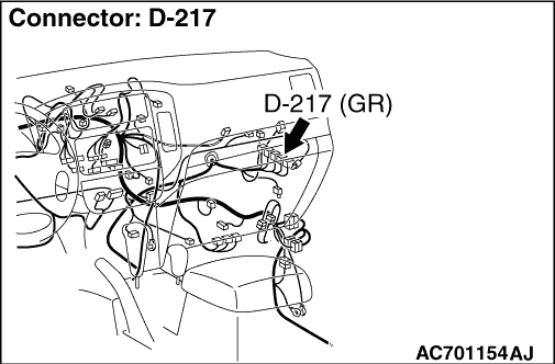 (3)Measure the voltage between engine-A/T-ECU connector D-217 terminal No.119 and earth. OK: