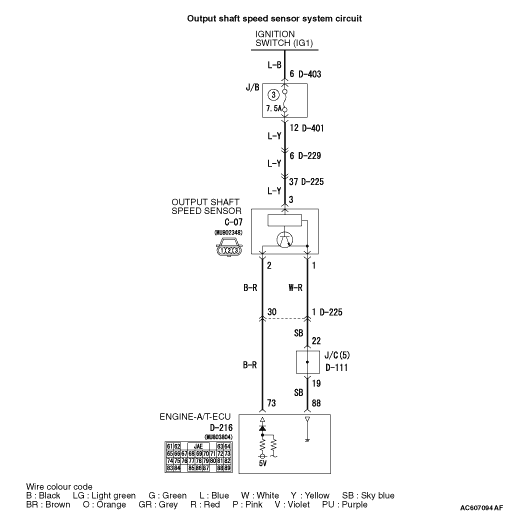(1)Disconnect output shaft speed sensor connector C-07.