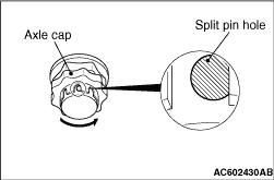 Using special tool front hub and flange yoke holder (MB990767), tighten the axle nut.