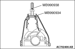 5.Remove the companion flange and drive pinion again. Then insert the drive pinion front bearing inner race into the gear carrier. Use special tool differential oil seal installer (MB991168) to press-fit the oil seal.