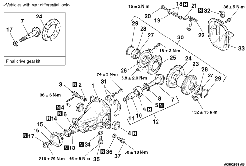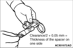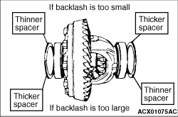 5.If the backlash exceeds the standard value, adjust it by replacing the side gear spacers.
