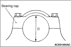 9.Install the bearing cap, and then use a cylinder gauge to measure the inside diameter (D) of the bearing cap.