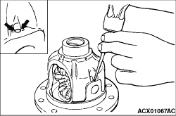 3.Insert a wedge between the side gear and the pinion shaft to lock the side gear.