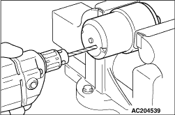 Use the drill to make a hole on the accumulator, and then extract the sealed gas.