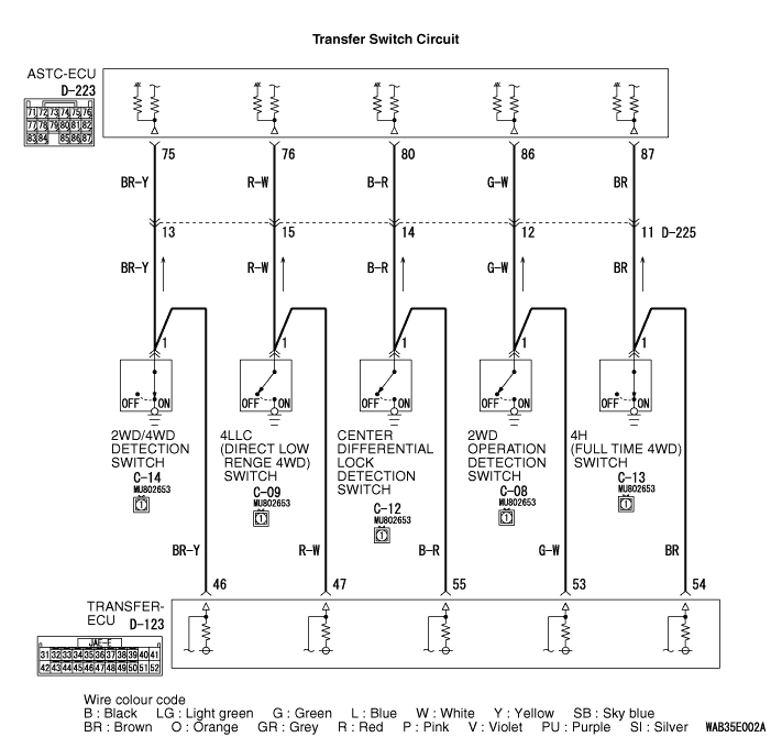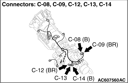 C-14 2WD/4WD detection switch connector, C-09 4LLC (direct low range 4WD) switch connector,