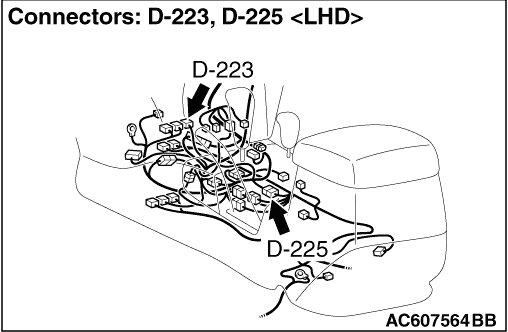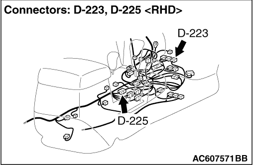 STEP 4. Check D-223 ASTC-ECU connector, D-225 intermediate connector,