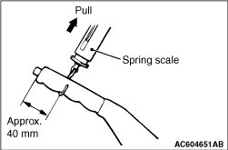 Attach the spring scale to the centre of the parking brake lever grip. Then, check that