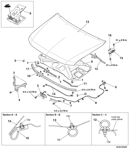 Hood latch <Hood latch switch: Optional>