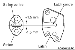 Install the striker so that the striker centre does not deviate more than 1.5 mm from the latch centre. |