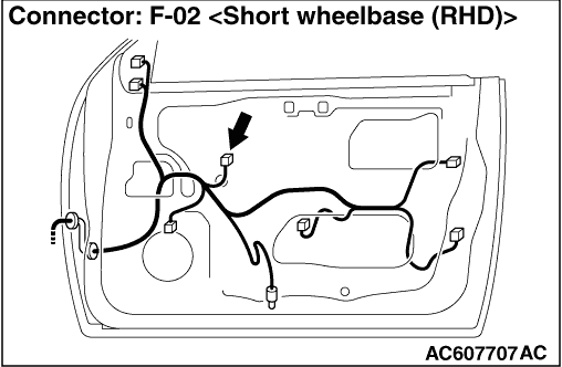 STEP 14. Resistance measurement at the F-02 power window main switch connector.