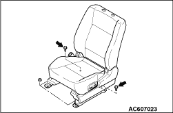 1. Confirm that both the seat slides are locked, and then temporarily tighten all the bolts shown in the figure so that no load is applied to the front seat cushion.