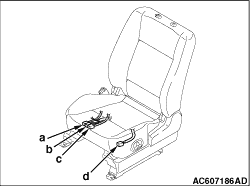 caution Before removing the front seat assembly, refer to GROUP 52B, Service Precautions and side and Curtain Air Bag Module .