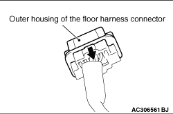 Insert special tool MB991866 into the E-121 harness side connector by backprobing. (5)Connect the negative battery terminal. (6)Erase the diagnosis code from memory, and check the diagnosis code.