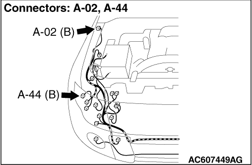 - Resistance between A-02 side turn-signal lamp (RH) connector terminal No.1