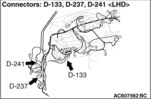 (1)Disconnect the connector, and measure at the wiring harness side.