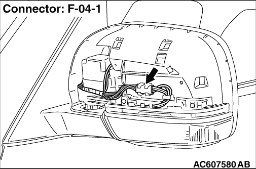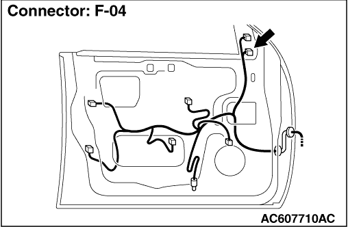 - Resistance between F-04 door mirror assembly (LH) connector terminal No.5 and body