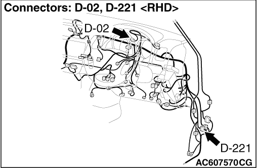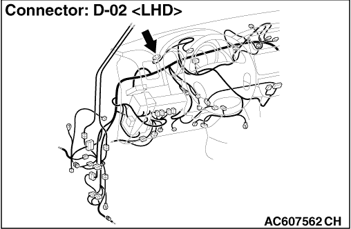 STEP 3. Connector check: Combination meter connector D-02.