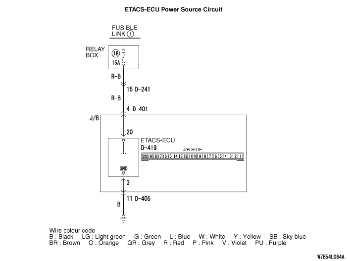 (2)Voltage between D-419 ETACS-ECU connector terminal No.20 and body earth. OK: System voltage