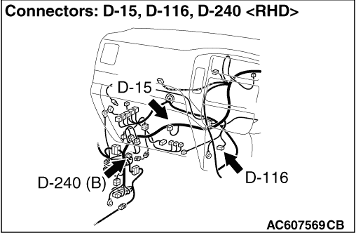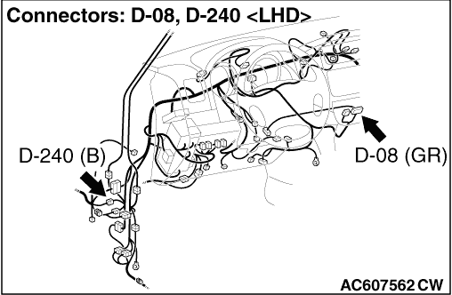 (3)Disconnect A/C-ECU connector D-08, and earth terminal 16.