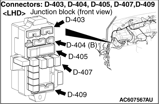 (3)Disconnect A/C-ECU connector D-08 and earth terminal 15.